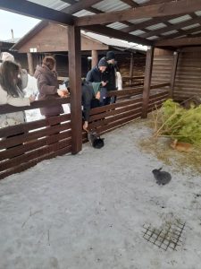 В ходе экскурсии ребята познакомились с условиями содержания и кормления мелкого рогатого скота, лошадей, кроликов, сельскохозяйственной птицы, вспомнили основные породы овец и коз содержащихся на ферме.