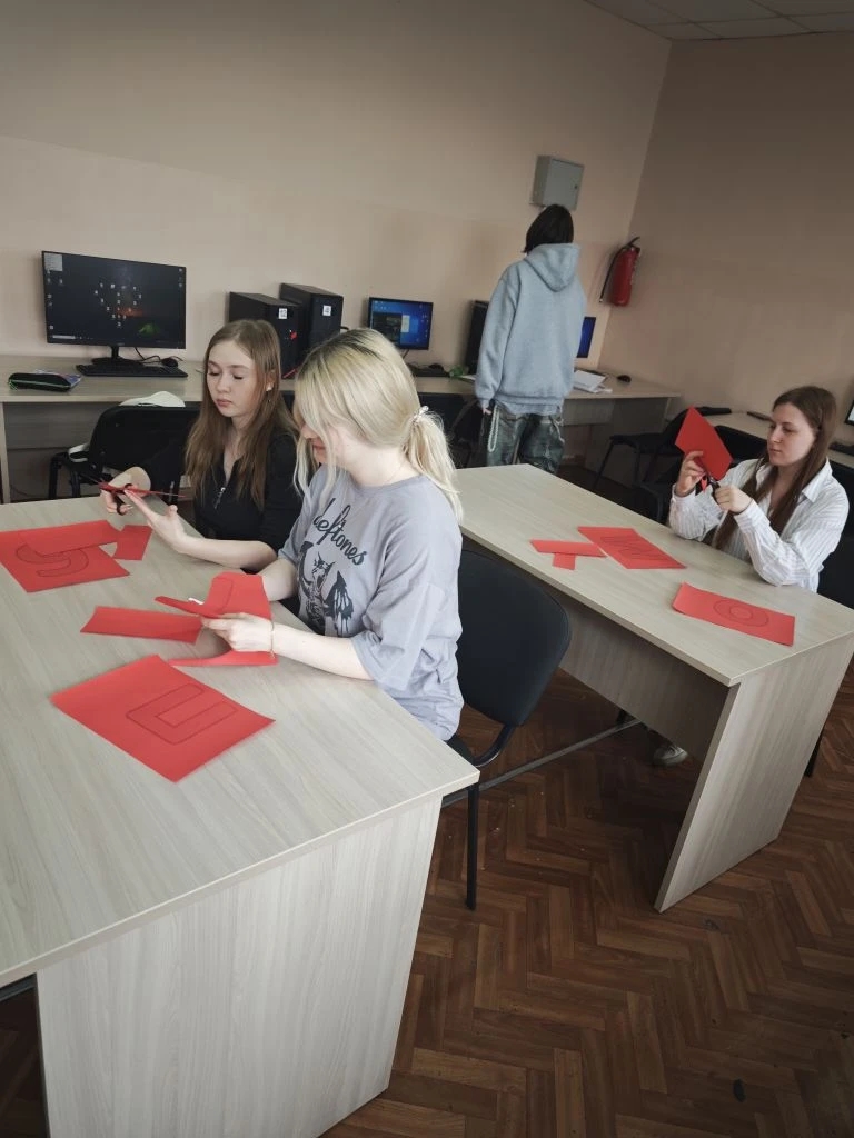 В преддверии 9 Мая не стихает творческая атмосфера — группа АТ-13-25-1 помогли преподавателю украсить кабинет информатики 4-03.