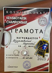 Выступая от спортивного клуба «Лидер» под эгидой организатора ВСК «Сармат», Николай принял участие в Краевом турнире по Косики каратэ в возрастной категории 16-20 лет.