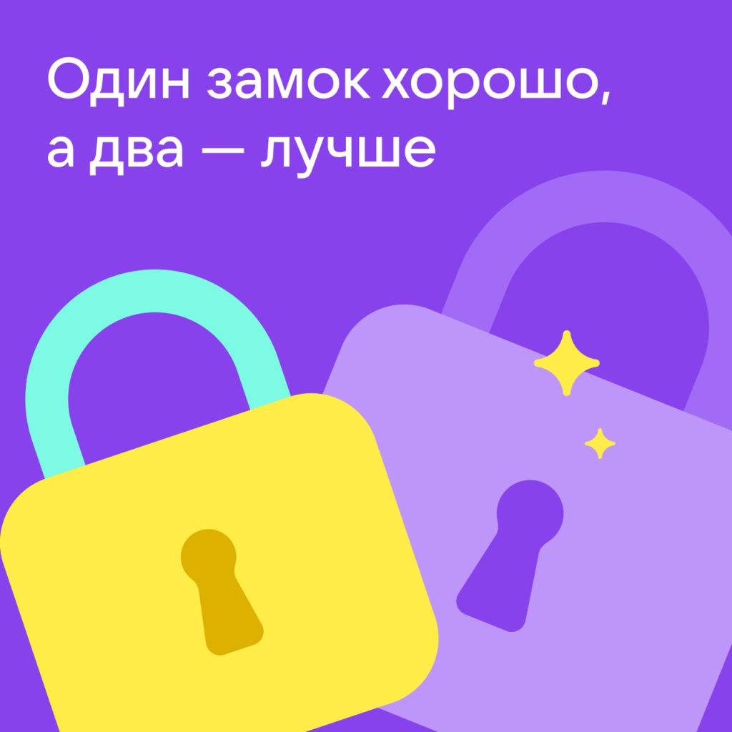 Двухэтапная защита действительно работает как два замка — даже если мошенники смогли подобрать ключ к одному из них, второй надёжно сохранит ваши данные. А чтобы профиль точно был защищён со всех сторон, установите сложный пароль.