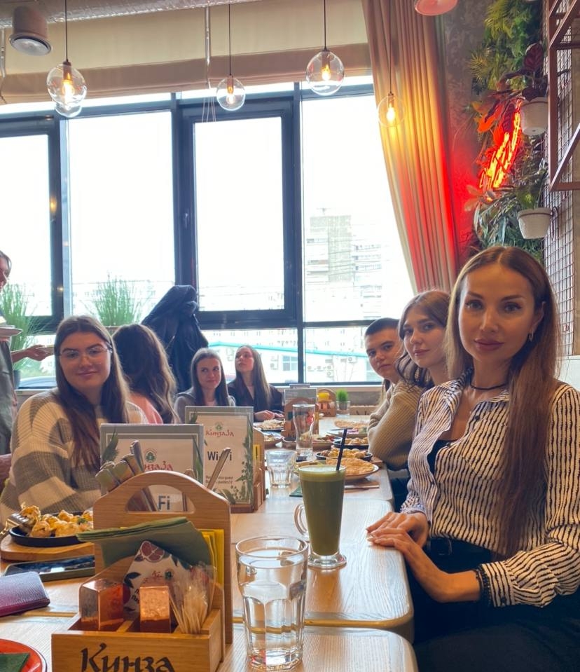 Атмосфера, царящая за столиками, пропитана искренностью и беззаботным смехом. Сквозь шум города доносятся отрывки разговоров: обсуждение последних новостей, обмен впечатлениями об учебном процессе, а иногда и просто обмен сокровенными мечтами, планами. Каждый, из ребят в этом кругу, ощущает себя частью — команды, где каждый готов поддержать, помочь и просто выслушать!